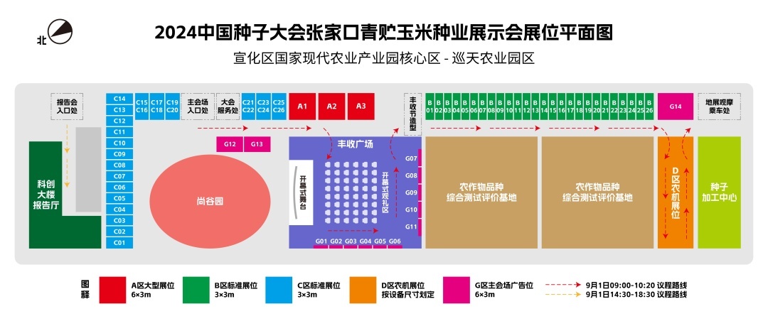 2024中国种子大会(张家口)青贮玉米种业展示会展区企业展位、广告位平面参考图。
